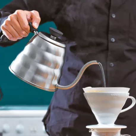 Hario V60 Buono Kettle er en favorit blandt baristaer verden over. Kedlen er designet til præcis ophældning og er ideel til brygning af kaffe med manuelle bryggemetoder som V60 Dripper, Chemex og Aeropress.